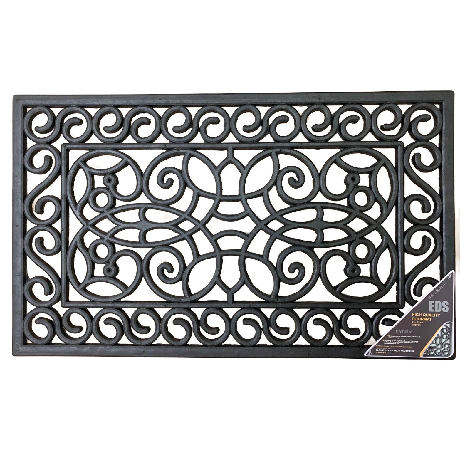 The Decorative Rubber Door Mat is designed to provide a practical solution for your entryway while adding a touch of elegance to both indoor and outdoor spaces. Made from high-quality rubber, this mat is both durable and easy to clean, ensuring long-lasting performance in high-traffic areas. The anti-slip design ensures it stays securely in place, providing safety in entryways, hallways, and even outdoor patios.